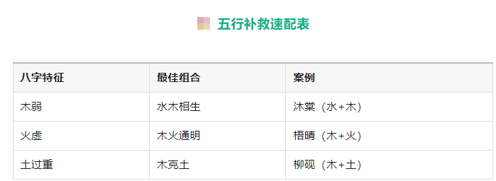 三、五行補(bǔ)救速配表